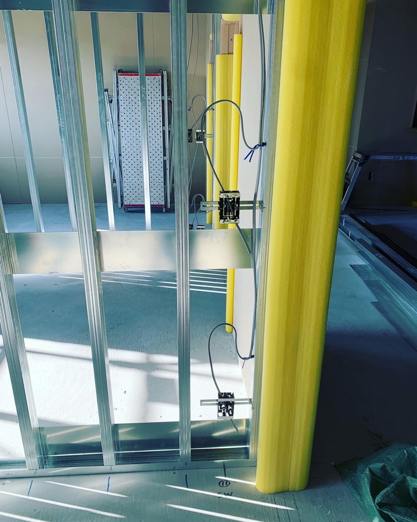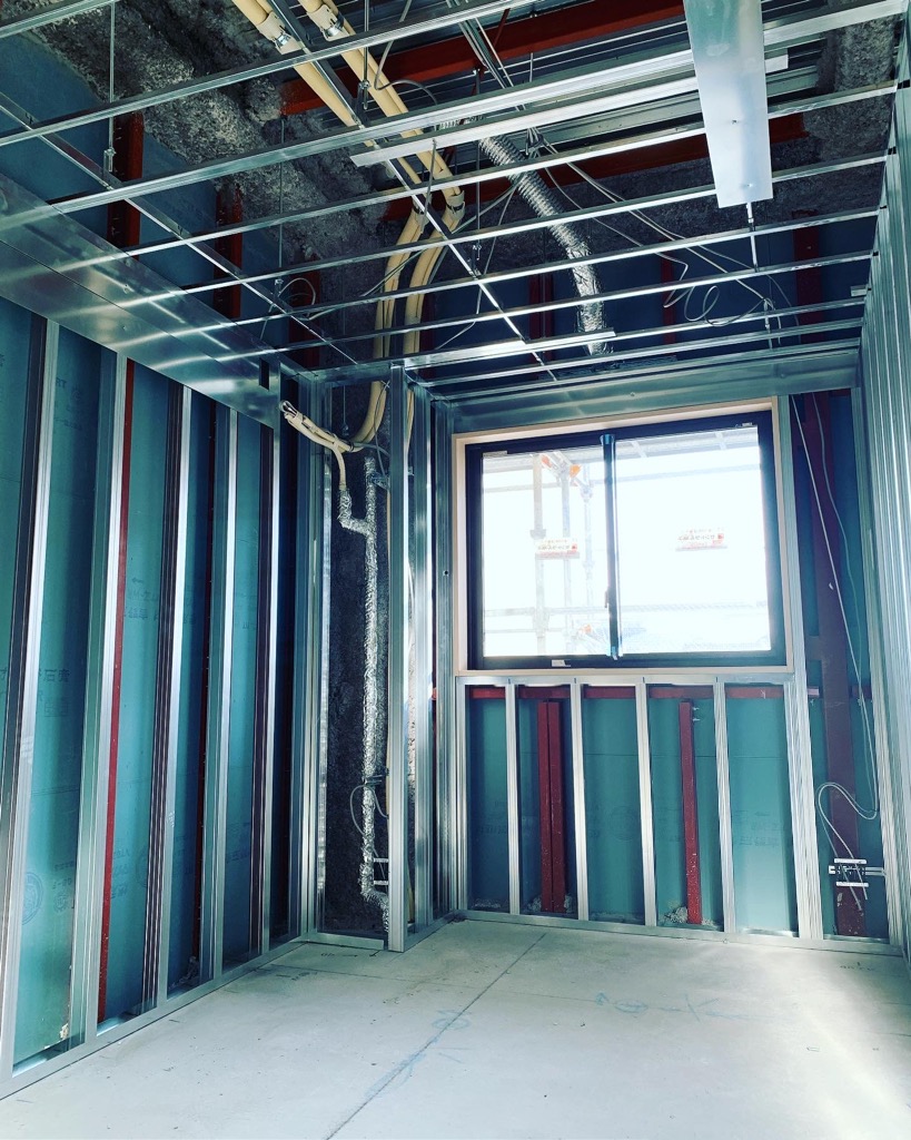 老人ホーム居室のコンセントやスイッチ、シーリング照明の仕込み作業状況